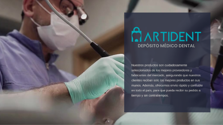 En Artident ofrecemos una amplia variedad de productos dentales, incluyendo materiales de restauración como composites, amalgamas, cementos y adhesivos; instrumental dental de exploración, endodoncia, ortodoncia y cirugía; materiales de consumo como guantes desechables, fresas, seda dental y productos de desinfección; además de equipos y aparatos como turbinas, micromotores, unidades dentales y compresores. También contamos con materiales de blanqueamiento, ortodoncia, prótesis fijas y removibles, así como kits de ortodoncia con cepillos, seda dental, pasta y enjuague, todo diseñado para cubrir las necesidades de consultorios, estudiantes y profesionales de la odontología.
